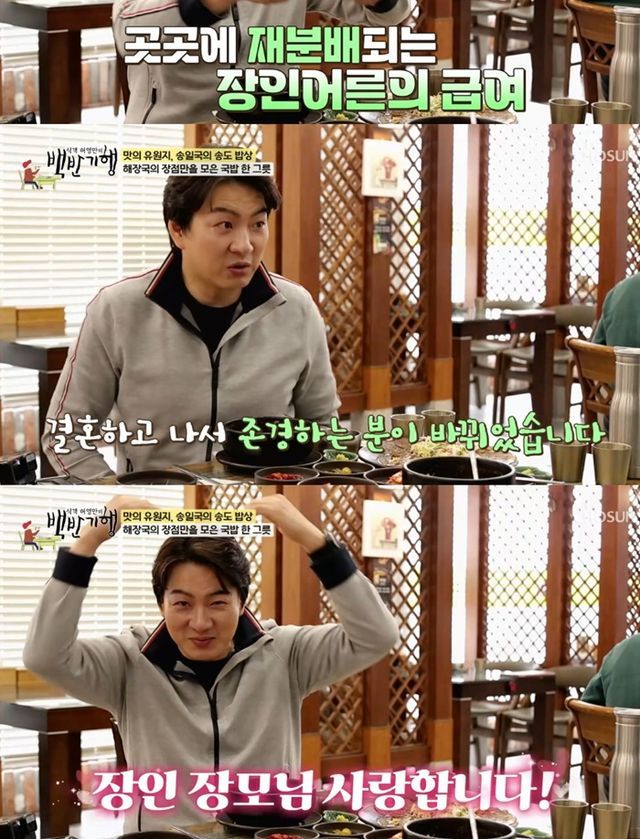 이를 듣던 허영만은 "살려고 노력 많이 하신다"고 돌직구를 날렸고, 송일국은 "여보 사랑해, 장인 장모님 사랑합니다"라며 '사위애교'를 부려 훈훈함을 자아냈다.