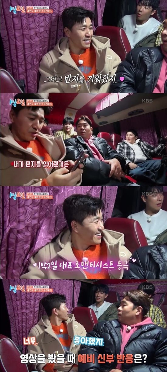 김종민은 예비신부가 자신이 쓴 편지에 많이 울었다고 했다. 김종민은 편지를 처음으로 써본 것이라고 했다.