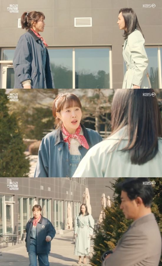 9일 방송된 KBS 2TV 주말드라마 '독수리 5형제를 부탁해!'(이하 '독수리 5형제') 12회에서는 강소연(한수연 분)이 오천수(최대철)에게 이혼을 통보하고 마광숙(엄지원)을 찾아가 유산을 요구한 모습이 그려졌다.
