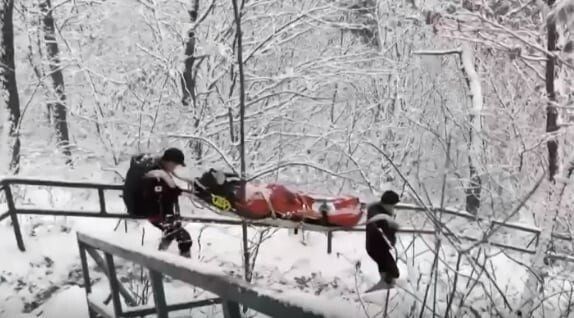구조대원들에게 실려갔다.