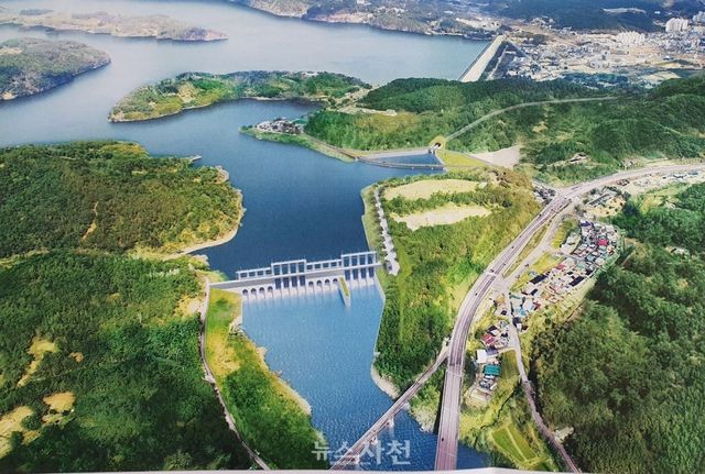근데이 남강댐이 만들어지며 생긴 섬이 있는데 산줄기로 갈려 다른 수원지에서 발원해 사천으로 흘러가던 가화천이 남강댐이 생기며 하나의 수계가 되었다. 그리고 이 물줄기는 수심을 조절하기 위해 남강댐의 3개보다 더 많은12개의 수문을 설치하여 계속 흘렀다.