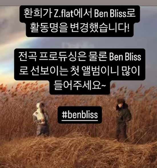 홍진경은 "환희가 Z.Flat(지플랫)에서 Ben Bliss(벤 블리스)로 활동명을 변경했다. 전곡 프로듀싱을 직접 한 벤 블리스의 첫 앨범이니 많이 들어주세요"라며 최환희의 새 활동명 벤 블리스를 해시태그했다.