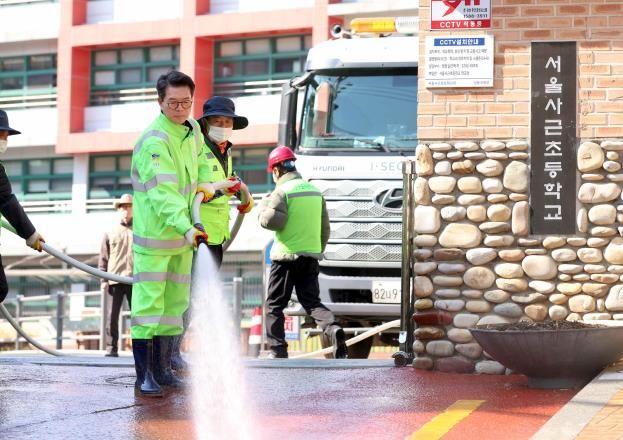 [파이낸셜경제=김영란 기자] 서울 성동구는 관내 초‧중‧고 학생들에게 새학기를 맞아 쾌적하게 등교할 수 있도록 2025년 2월 24일부터 28일까지 관내 27개 초‧중‧고 학교 통학로 물청소를 실시했다.