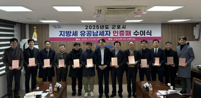 [파이낸셜경제=김영란 기자] 군포시 하은호 시장은 3월 5일 지방세를 성실하게 납부하여 지방재정 확충에 기여한 유공납세자 15개 법인에게 ‘유공납세자 인증패’를 수여하고 감사의 마음을 전했다.