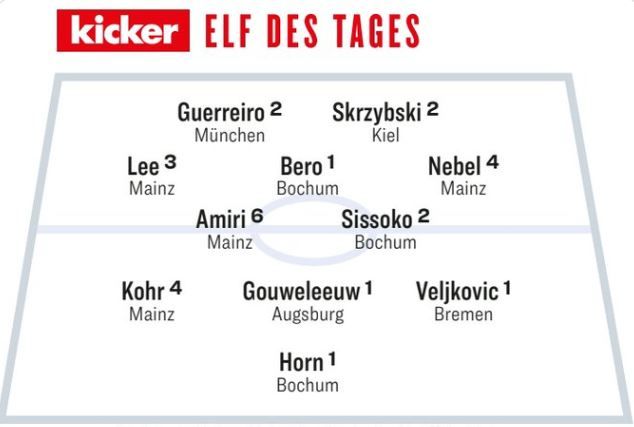 한편 바이에른뮌헨을 꺾은 강등권 보훔에서 3명이나 선정된 점이 눈에 띈다. 바이에른은 패배했음에도 불구하고 2골을 넣은 하파엘 게헤이루가 공격진 중 한 자리에 선정됐다. 이번 라운드에 바이에른, 바이엘04레버쿠젠, 프랑크푸르트, 보루시아도르트문트가 일제히 패배하고 RB라이프치히는 무승부에 그치면서 리그를 대표하는 스타들이 대부분 빠진 신선한 베스트 팀이 마들어졌다.