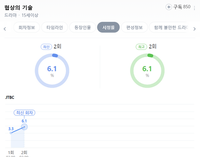 JTBC 새 토일드라마 '협상의 기술' 시청률 추이 / 네이버 제공