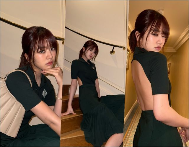 이날 안유진은 짙은 녹색의 원피스와 캐주얼한 아이보리 컬러의 핸드백을 매치해 패션을 완성했다. 특히 원피스는 뒤태를 훤히 드러내는 스타일로 아찔한 매력을 더했으며, 안유진은 진한 스모키 메이크업으로 강렬한 분위기를 더했다.