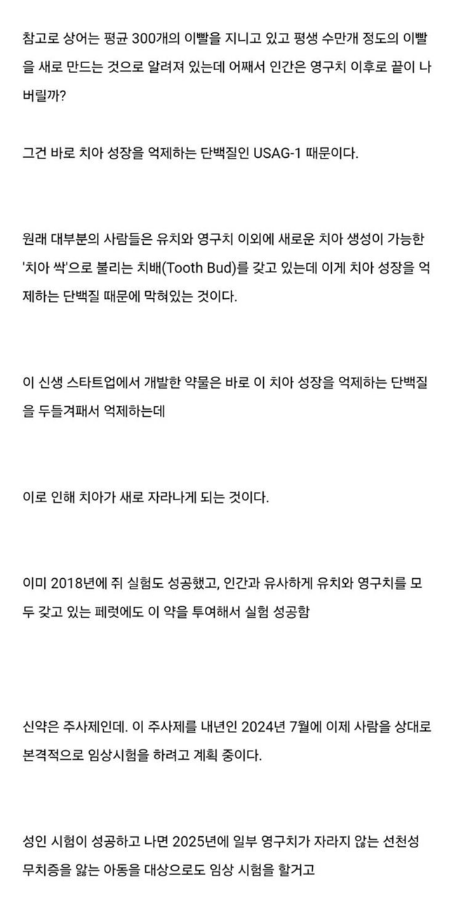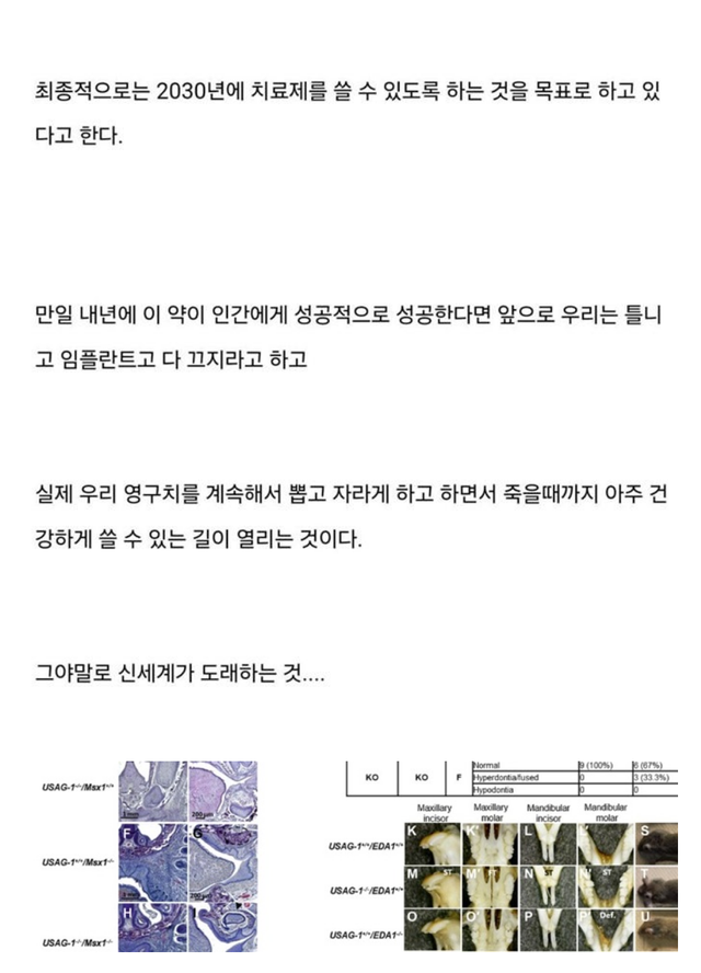 3. 그래서 그 USAG-1 이라는 단백질새끼를 완전 패서 새 영구치가 날 수 있도록 만드는거임 (쥐, 패럿 실험 성공)