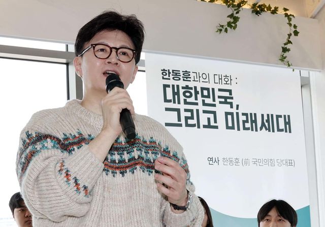 한동훈 전 국민의힘 대표가 지난 6일 서울 서대문구 코지모임공간 신촌점에서 열린 2025 대학생시국포럼 백문백답 토론회에 참석하고 있다. / 뉴스1