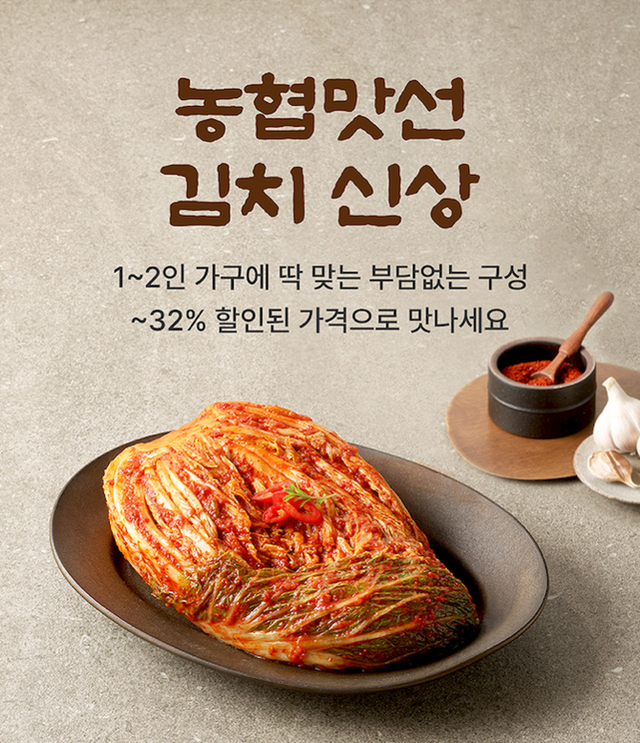 농협에서 운영하는 농식품 구독서비스 '월간농협맛선'이 1~2인 가구를 위한 맞춤형 김치 구독서비스를 새롭게 선보인다. 김치를 대량으로 구매하기 부담스러운 소비자들을 위해 소용량 포장과 미니 세트 구성을 도입해, 더욱 실속 있는 소비가 가능하도록 했다.