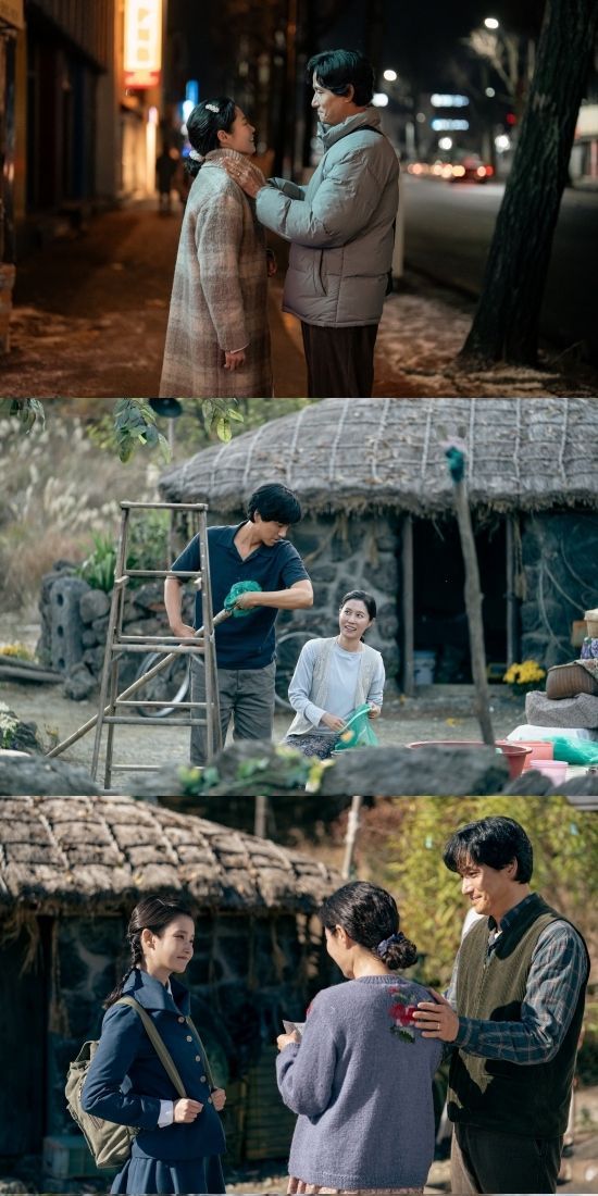또한 관식의 스틸은 애순을 다독거리고, 손수레에 애순을 싣고 달려가는 등 보듬고 살펴야 할 가족이 생긴 그에게 어떤 변화가 생길지 궁금증을 더한다. 이어 당황한 듯 두 손을 든 문소리의 애순 스틸과 열심히 음식을 나르는 박해준의 관식 스틸은 세월이 흐르는 동안 부모로 성장해 온 두 사람의 인생을 짐작케 하며, 삶의 무게 속에서 더 단단해지고 깊어진 이들의 모습을 기대 하게 만든다.
