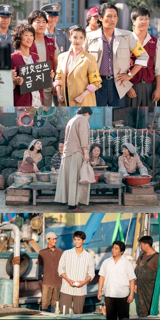 함께 공개된 보도스틸은 애순과 관식의 인생 2막 속 다채로운 순간들을 담아내며 이목을 집중시킨다. 여자에다 가난한 집 아이라 반장조차 꿈꿀 수 없었기에 좌절했던 꿈 많던 애순이 성인이 된 후, 마침내 어촌계의 부계장 완장을 찬 모습부터 좌판에서 생선을 파는 모습까지. 애순의 모습은 상황도 시절도 나이도 다 변했고 시가 아닌 생계를 위해 애쓰고 있지만, 여전히 요망진 애순을 실감나게 보여준다.