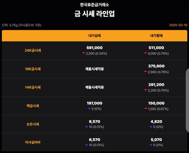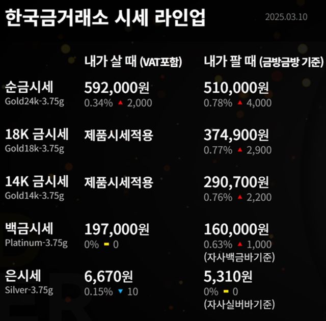 순금(24K) : 매입가 59만 2000원 / 매도가 51만 원
