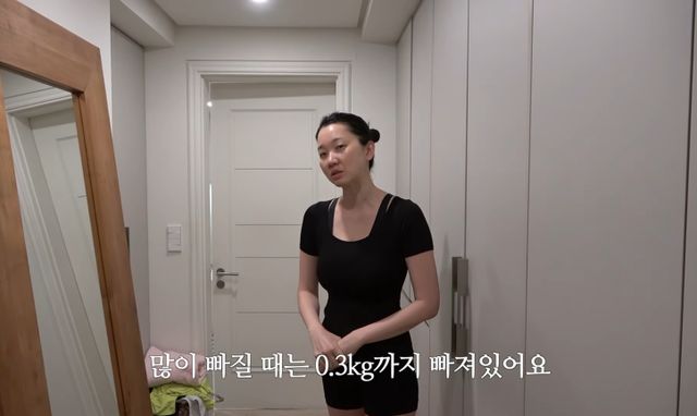 전날 손님이 너무 많이 왔다면서 "너무 놀라지 마"라고 걱정한 장윤주는 54.9kg의 몸무게를 공개했고, 약 5분 간의 물 샤워를 끝낸 장윤주는 0.2kg이 빠진 몸무게를 보며 "되게 큰 거다"라고 강조했다.
