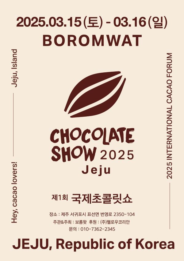 [한라일보] 제주에서 처음 열리는 '국제초콜릿쇼'가 오는 15~16일 서귀포시 표선면 성읍리 보롬왓 일대에서 열린다. '초콜릿'을 주제로 세계적인 유명 쇼콜라티에 등 5개국(프랑스, 일본, 호주, 마다가스카르, 한국)이 참여하는 행사다.