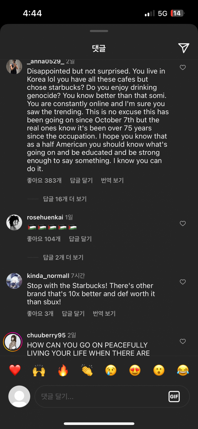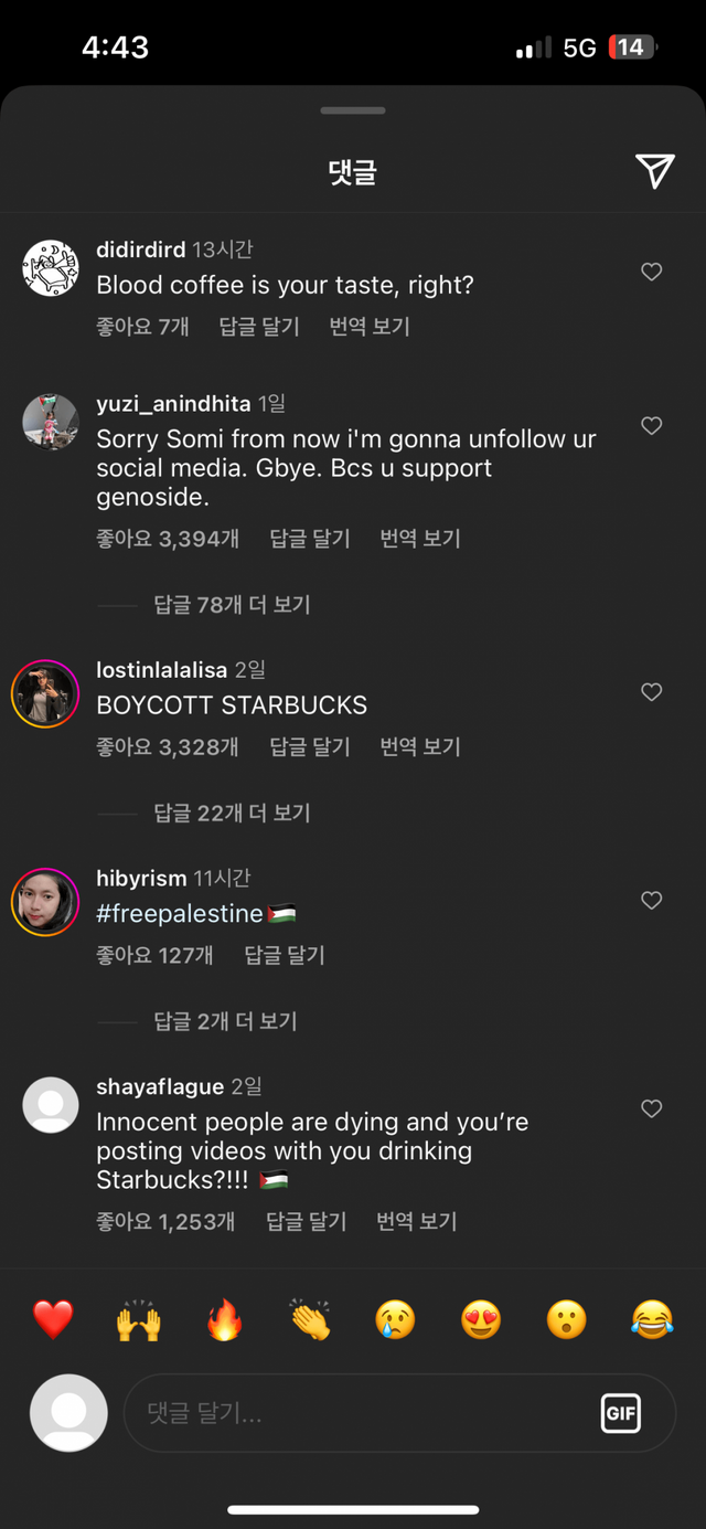 아마 뿔난 이유는 스타벅스가 이스라엘 지지해서 그런듯?