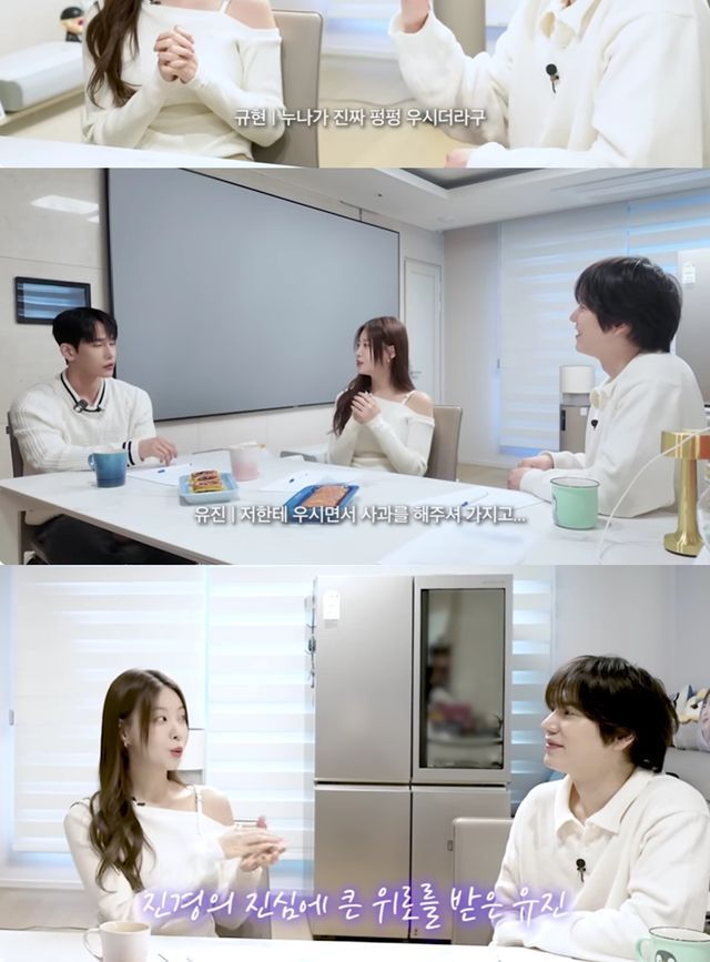 이어 그는 "회식을 할 때 진경 누나가 (정유진에게) 사과를 많이 했다"고 밝혔고, 정유진은 "'부앙부앙' 따라 하셨던 거랑 복합적으로 다 사과해 주셨다. 마음이 불편하신 채로 계속 있으셨다는 게 너무 감동이었다"라고 첨언했다.