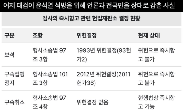 그러나 10년이 지난 현재, 검찰은 오히려 "즉시항고가 위헌 소지가 있다"며 윤 대통령의 석방을 결정했다.