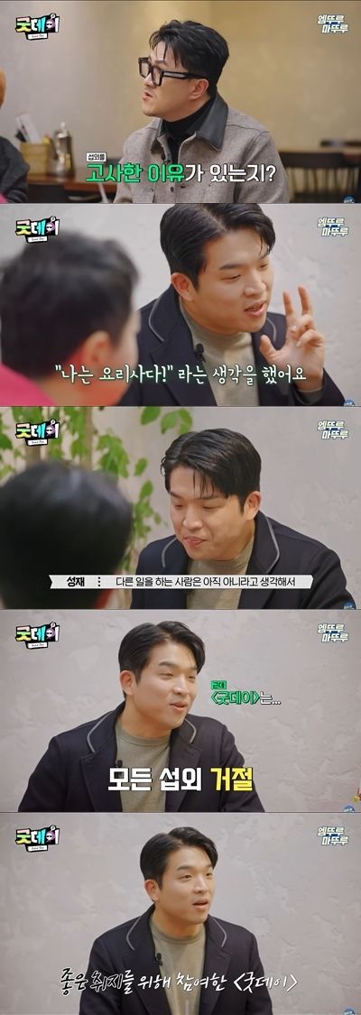 이어 데프콘이 예능 프로그램 섭외를 고사한 이유를 묻자 안성재는 "'나는 요리사다'라고 생각한다. 음식으로 감동과 맛, 좋은 시간을 드리는 사람이지 다른 일을 하는 사람은 아직 아니라고 생각한다"라고 말하며 자신의 가치관을 드러냈다.