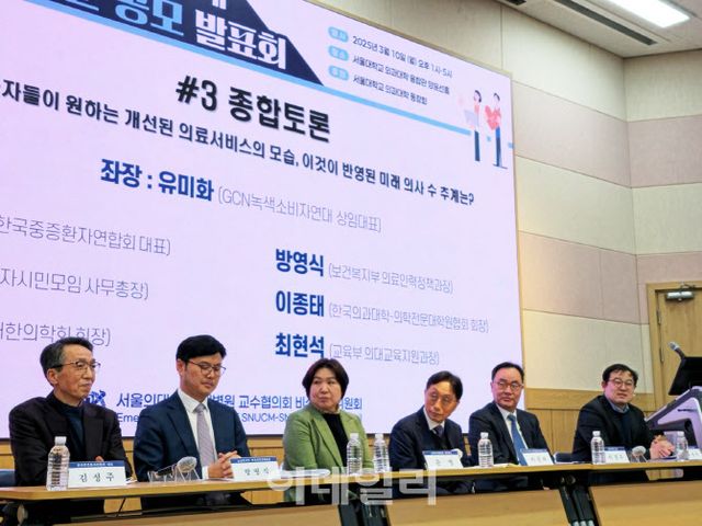 임유나 서울대 보건환경연구소 객원 연구원도 전반적으로 의사 수 부족을 예상했다. 다만 종별 불균형 해소를 위해 의료전달체계 개편이 필요하다는 입장을 덧붙였다. 임 연구원에 따르면 중위추계 및 265일 근무일 기준으로 2025년 4973명의 의사가 부족했다. 이후 부족한 의사 수가 2030년 9063명, 2040년 2만 1345명으로 증가하다가 2050년에 2만 8664명으로 최대 부족을 기록한 후 2060년에는 1만 7843명으로 부족 규모가 다소 감소했다. 반면, 2026년부터 의대 입학정원을 매년 1500명 증원할 경우, 2050년에는 5612명으로 부족 규모가 감소하고, 2060년에는 1만 7064명 공급초과로 전환되는 것으로 나타났다.