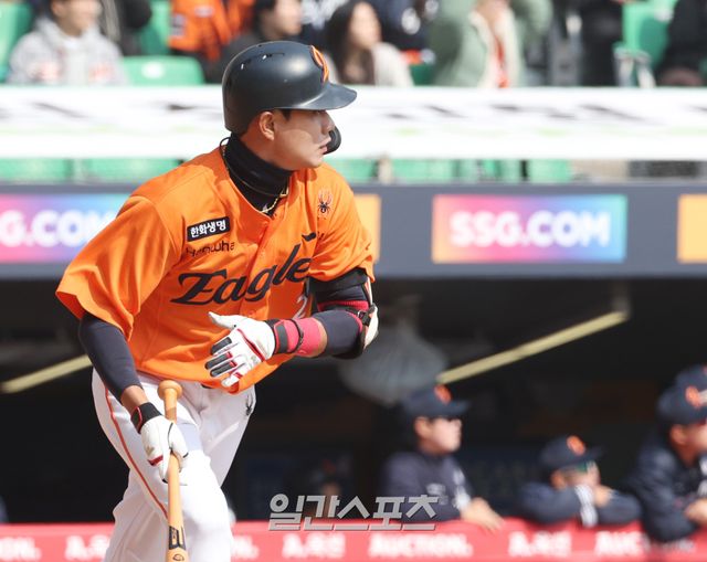 심우준은 지난해 11월 KT 위즈를 떠나 한화에 둥지를 틀었다. 자유계약선수(FA) 권리를 행사, 4년 최대 50억원(총연봉42억원, 옵션 8억원) 대형 계약을 따냈다. 하지만 통산 타율이 0.254에 불과할 정도로 타격이 약하다. 시범경기 부진까지 겹쳐 비판의 목소리가 커질 수밖에 없었다. 그럴 때마다 김경문 감독은 "잘 해낼 것"이라고 격려를 아끼지 않았다.