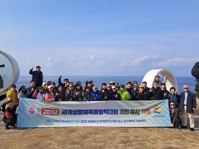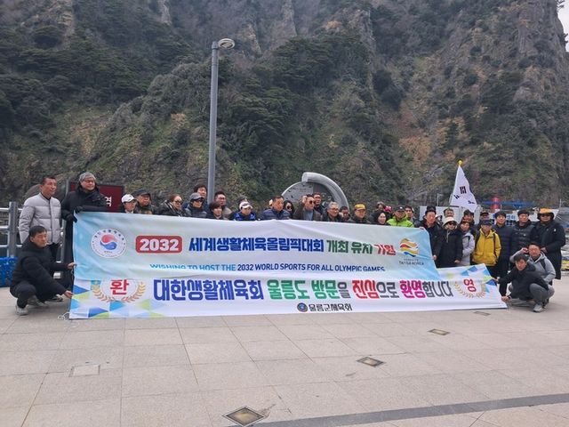대한생활체육회가 2032년 생활체육 세계올림픽 유치를 기원하며대한생활체육골프협회 및 다른종목별 회장진과 체육회 임원들이지난 3월 7일부터 8일까지 울릉도와 독도를 방문해 태극기를 들고 굳은 결의를 다졌다.