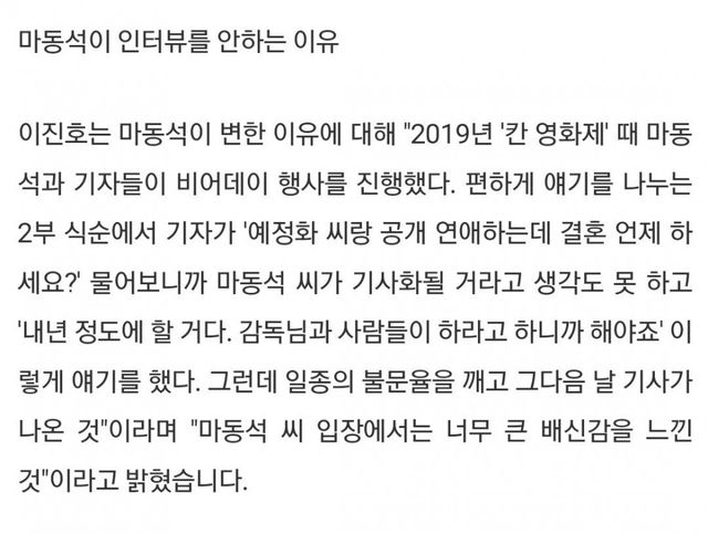 열받은 마동석이 19년 이후 인터뷰 모두 거절