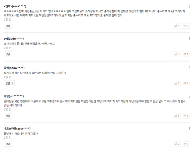 병사가 간부제치고 자기가 알아서한다고 애들한테 명령하는거보고 이게 말이 되냐고 화남