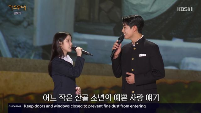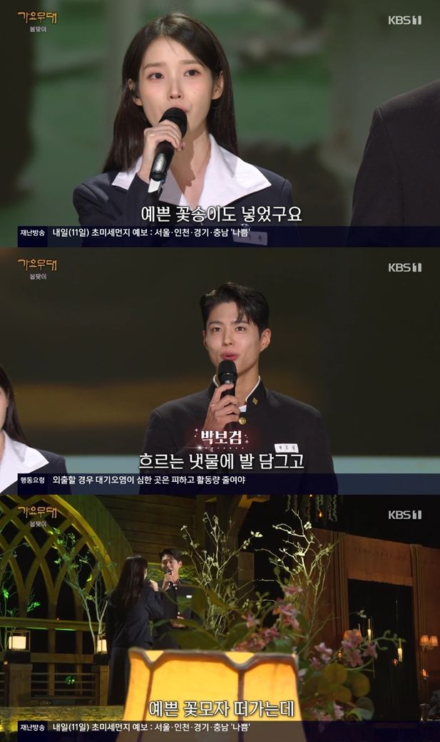 10일 방송된 KBS 1TV '가요무대'에는 가수 겸 배우 아이유와 배우 박보검이 출연해 오프닝을 열었다.