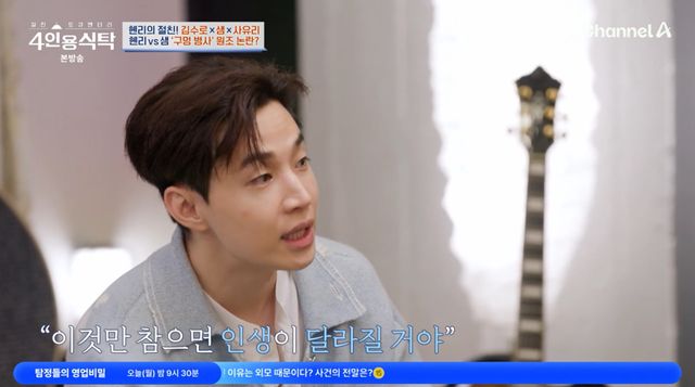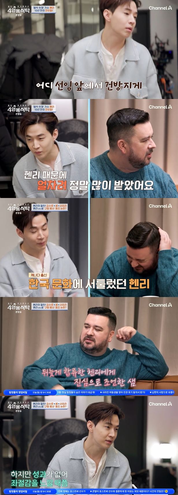 10일 방송된 채널A '절친 토큐멘터리 4인용식탁'(이하 '4인용식탁')에는 가수 헨리가 출연해 배우 김수로, 방송인 샘 해밍턴, 사유리를 초대했다.