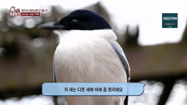 제작진이 전문가 모셔왔는데 제작진도 물까치 이렇게 가까이서 보는건 처음이라고 놀람