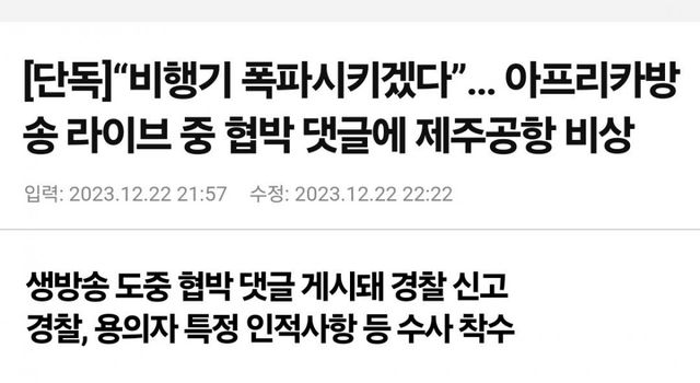 오늘 제주공항 지연중에 채팅으로 테러예고함.