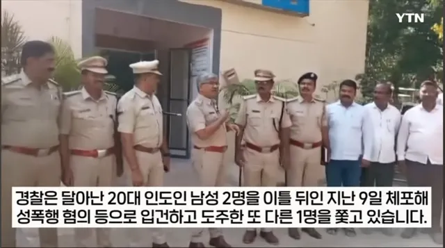 경찰은 달아난 20대 인도인 남성 2명을 이틀 뒤인 지난 9일 체포해 성폭행 혐의 등으로 입건하고 도주한 또 다른 1명을 쫓고 있습니다.