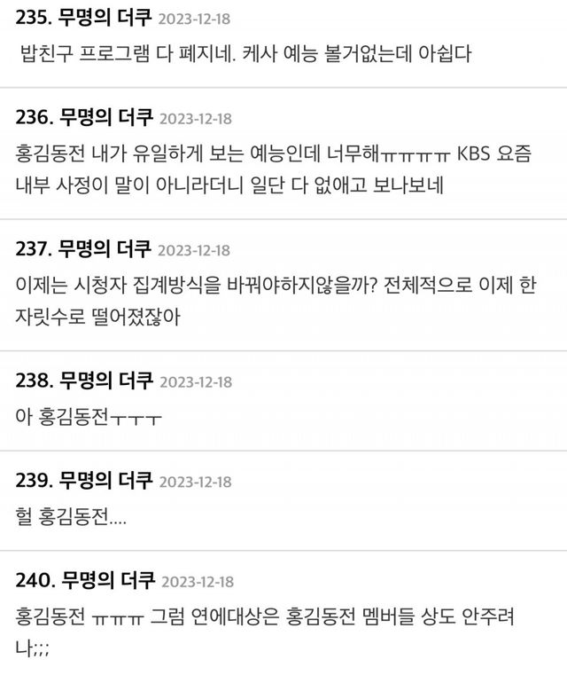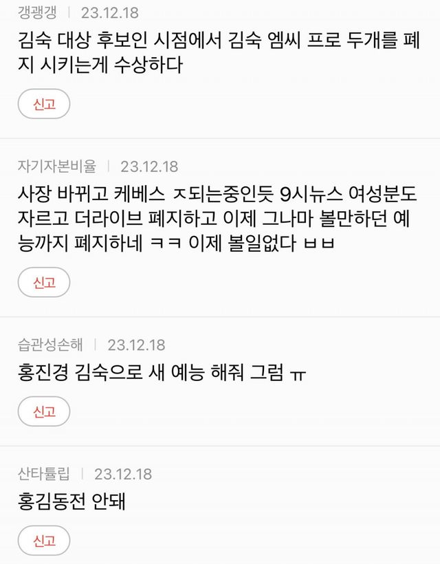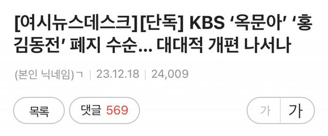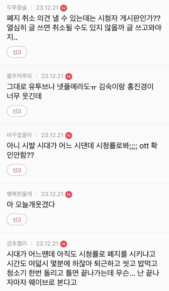 댓글 반응보면 요즘 K사에서 이것만 보는데 왜 폐지하냐는 반응이 꽤 많음….(물론 이해된다, K사가 많이 기다렸다는 반응도 있음)