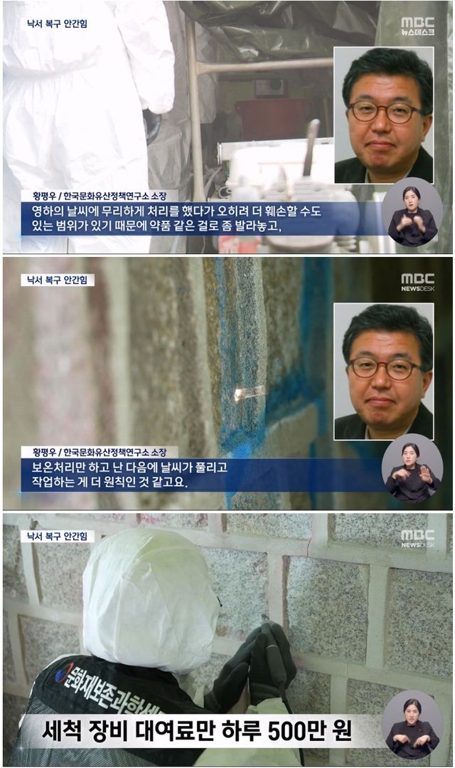 경복궁 낙서 세척 장비 대여료만 하루 5백만원