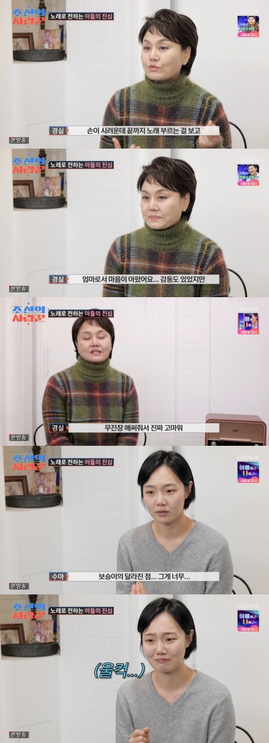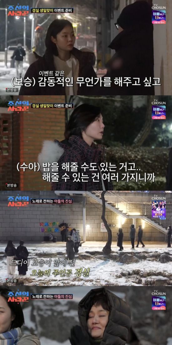 특히 이경실은 제작진과 인터뷰에서 "'엄마한테 감동을 주려고 정말 노력 많이 했구나' 그랬다. 고맙다. 계속 손 시린데 끝까지 부르는구나. 그게 엄마로서 마음이 아프더라. 감동도 있지만. '엄마를 이렇게 사랑하고 있다'라는 표현을 하려고 무진장 애를 쓴 것에 대해서 고맙다"라며 고백했다.