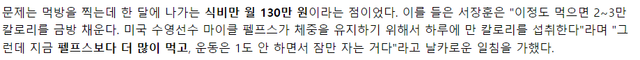 한달 수익은 50만원정도라고 함 (근데 식비가 130)