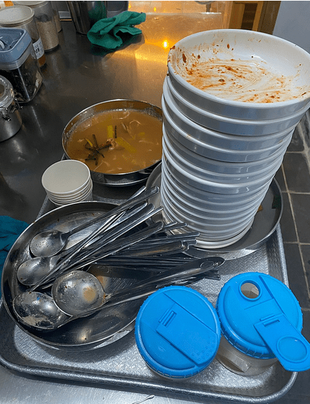 아줌마 3명이 와서 칼국수 3개 시켜놓고