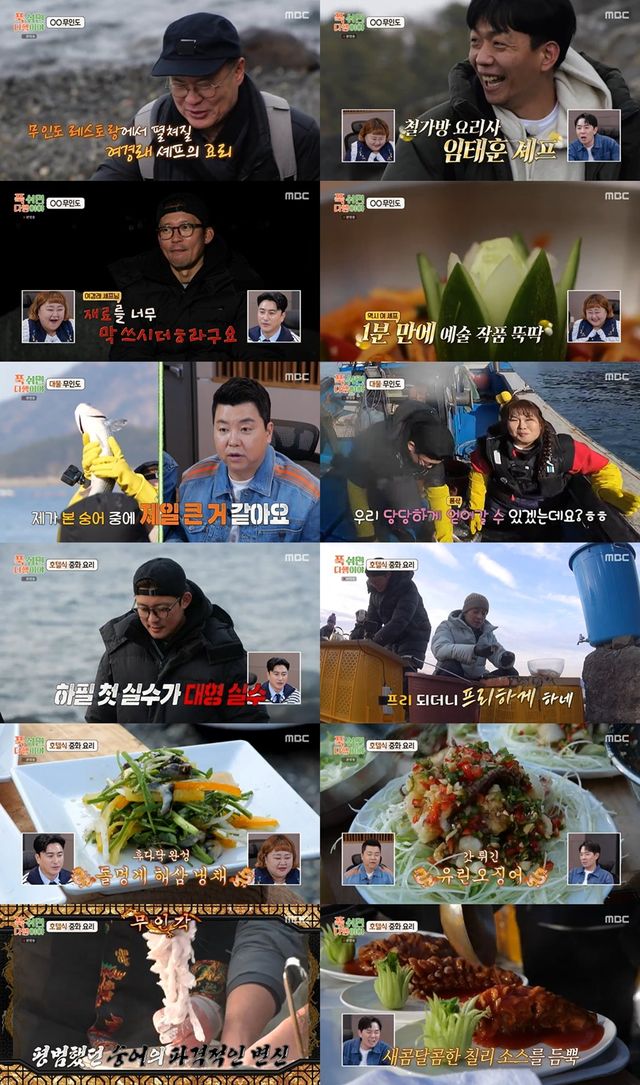 무인도에 돌아온 여경래와 임태훈은 각자 메뉴를 나눠 3가지 코스 요리를 준비했다. 먼저 임태훈은 ‘돌멍게 해삼 냉채’를 만들었다. 이때 김대호가 임태훈이 만들어 놓은 냉채 소스를 버려 버리는 대형 사고를 저질렀다. 좀처럼 사고를 치지 않던 김대호가 처음으로 저지른 대형 사고에 모두가 경악을 금치 못했다. 김대호도 놀라서 의기소침해 있자, 옆에 있던 허경환은 “프리하더니 프리하게 하네”라는 농담으로 분위기를 환기했다.
