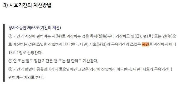 "시효와 구속기간의 초일은 시간을 계산하지 아니하고 1일로 산정한다"