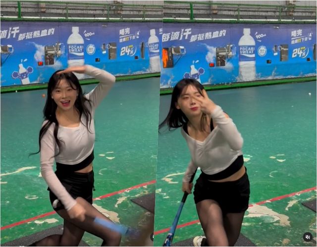김나연 치어리더가 배팅장을 찾은 모습을 공개했다.