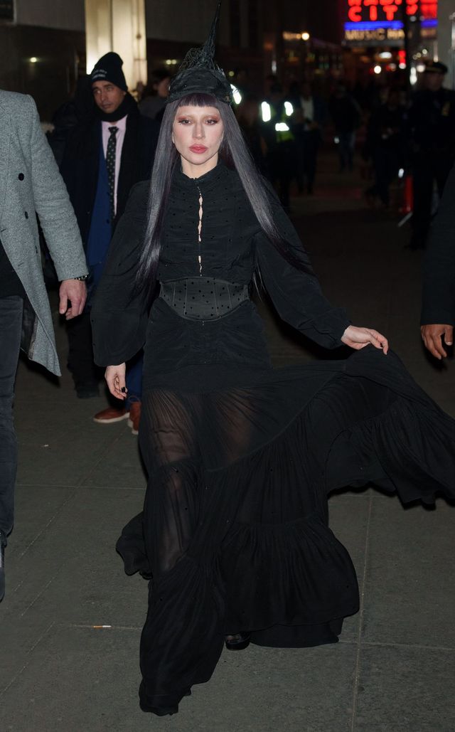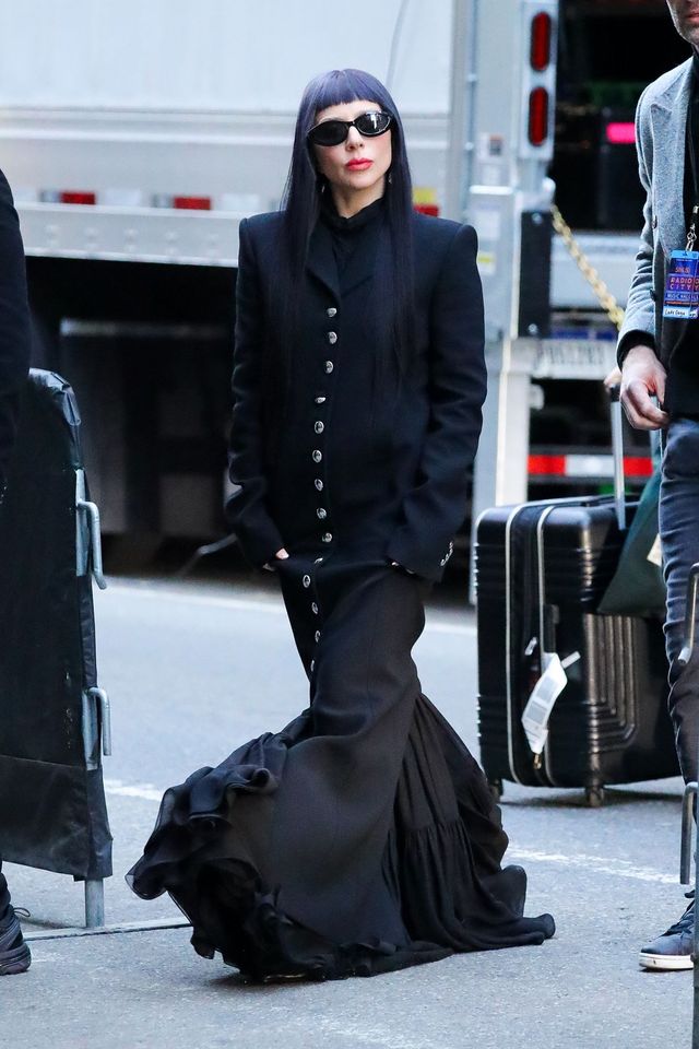 일상을 순식간에 예술로 탈바꿈시키는 일은 레이디 가가의 특기입니다. 베토 가르시아의 전위적인 헤드 피스를 이보다 완벽히 소화하는 여성이 또 있을까요? 또 다른 날엔 냉혈한 캐릭터가 떠오르는 버튼 장식의 롱 코트를 근사하게 차려입고 찰랑거리는 머메이드 스커트로 드라마틱한 실루엣을 연출했군요.