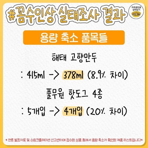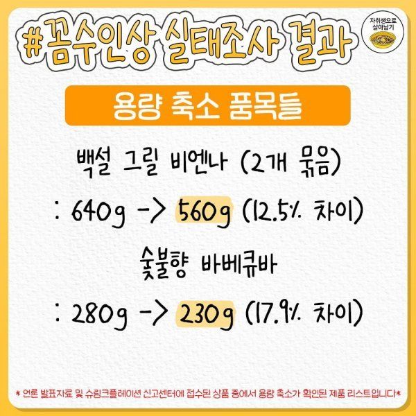 양 줄여버린 꼼수 가격 인상 제품 명단 공개