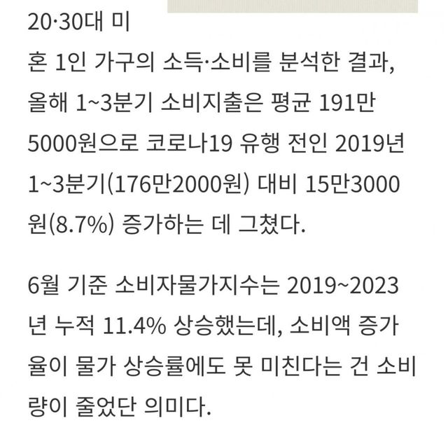 정작 소비가 늘기는 커녕 물가상승률 아래로