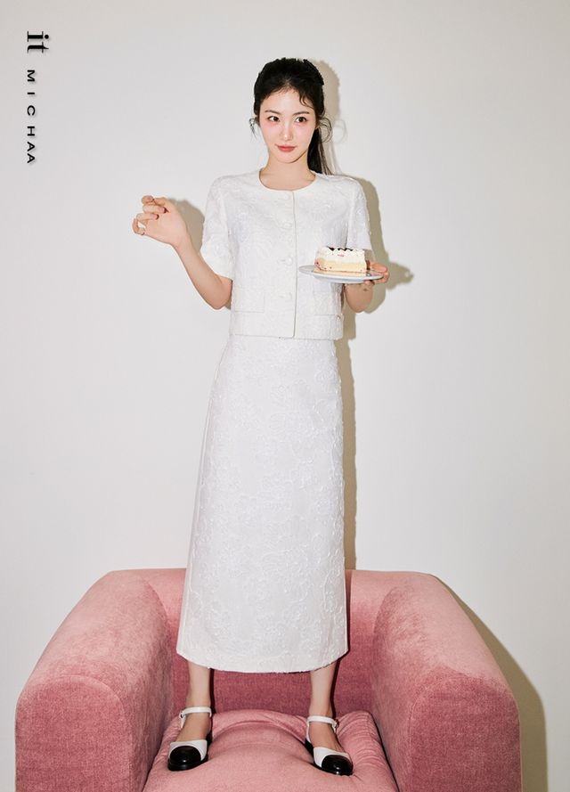 화이트 벌룬 스커트는 경쾌한 볼륨감을 선사하며, 움직일 때마다 가볍게 퍼지는 실루엣이 우아함을 더한다. 신예은이 선택한 이 스타일은 절제된 아름다움 속에서도 빛나는 존재감을 발하며, 어두운 쇼케이스 현장에서도 많은 이들의 시선을 사로잡았다.