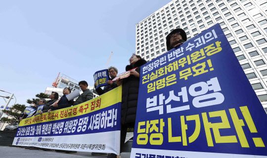 이들은 박 위원장의 퇴진과 함께 황인수 조사국장의 징계, 피해자 권리를 포함한 진화위법의 개정 등을 함께 요구했다.
