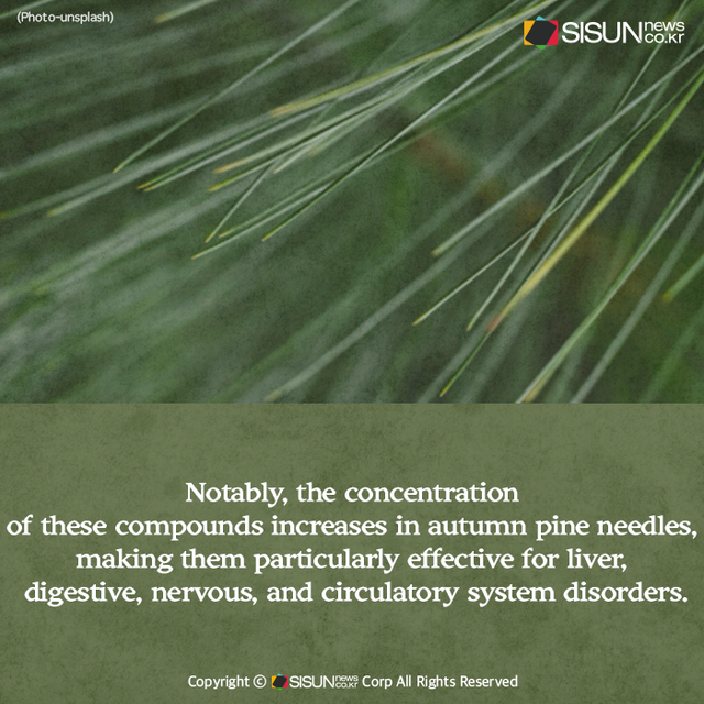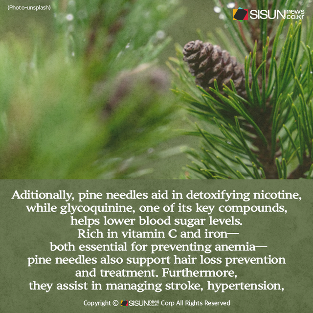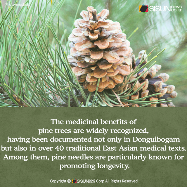 The medicinal benefits of pine trees are widely recognized, having been documented not only in Donguibogam but also in over 40 traditional East Asian medical texts. Among them, pine needles are particularly known for promoting longevity.
