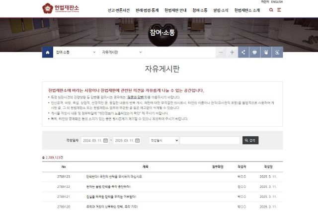 서울경찰청 사이버수사대는 최근 매크로를 이용해 헌재 홈페이지 자유게시판에 다수의 탄핵 반대 글이 올라왔다는 의혹과 관련해 내사에 착수했다고 11일 밝혔다.