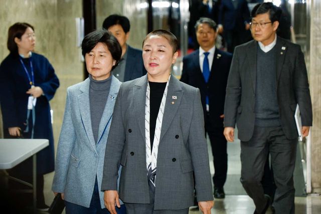 삭발 후 의총 향하는 전진숙 의원. / 뉴스1