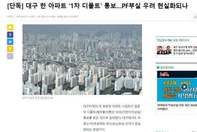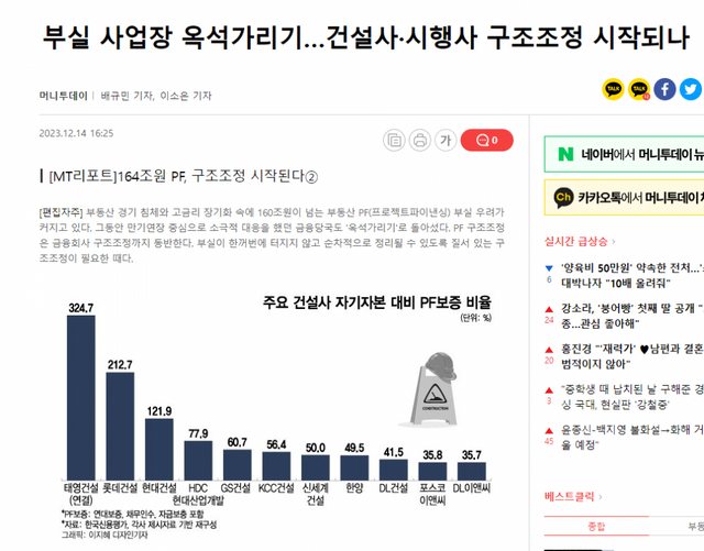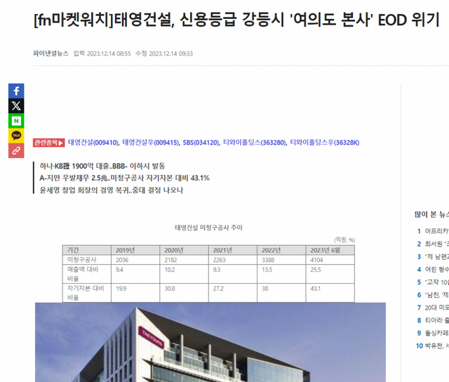 태영건설 PF보증 4조 법정관리행 검토 소문
